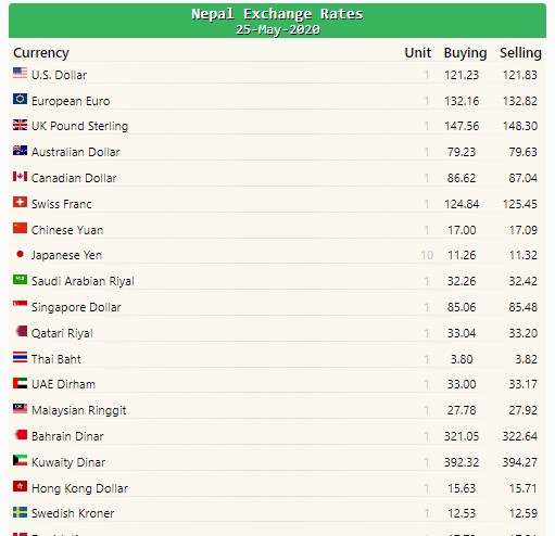 त्यस्तै, युरोपियन युरो एकको खरिददर १३२ रुपैयाँ १६ पैसा र विक्रिदर १३२ रुपैयाँ ८२ पैसा रहेको नेपाल राष्ट्र बैंकले जनाएको छ ।