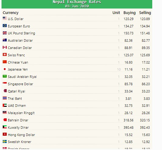 यस्तै, युरोपियन युरो एकको खरिददर १३४ रुपैयाँ २७ पैसा र विक्रिदर १३४ रुपैयाँ ९४ पैसा रहेको नेपाल राष्ट्र बैंकले जनाएको छ ।