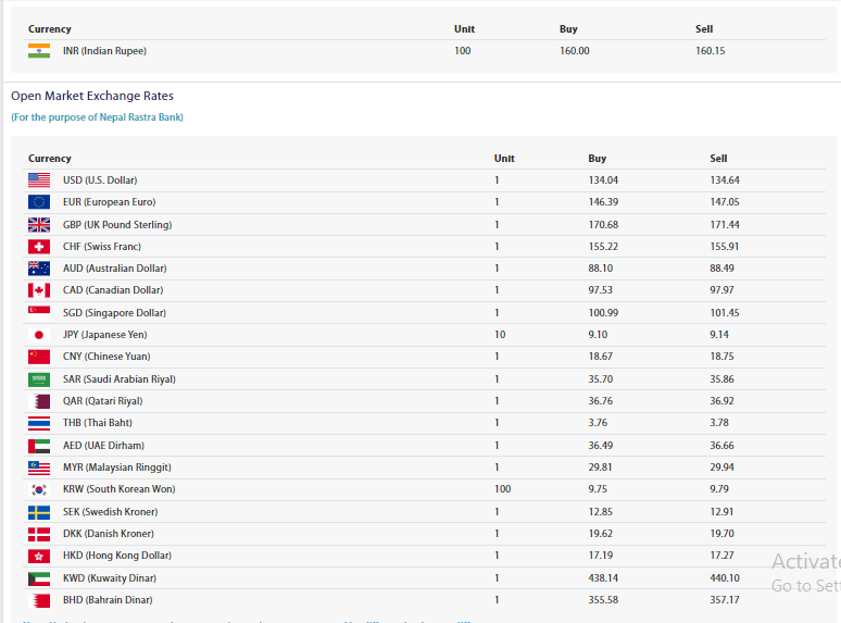 हिजो बुधबार डलरको बिक्रीदर १३४ रुपैयाँ ६३ पैसा र खरिददर १३४ रुपैयाँ ४ पैसा थियो। यस दिन डलरको मूल्य १ पैसा बढेर नयाँ रेकर्ड कायम गरेको थियो ।