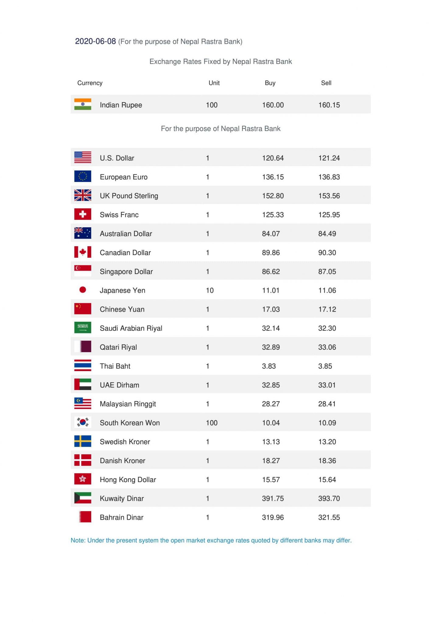 यस्तै, युरोपियन युरो एकको खरिददर १३६ रुपैयाँ १५ पैसा र विक्रिदर १३६ रुपैयाँ ८३ पैसा रहेको नेपाल राष्ट्र बैंकले जनाएको छ ।