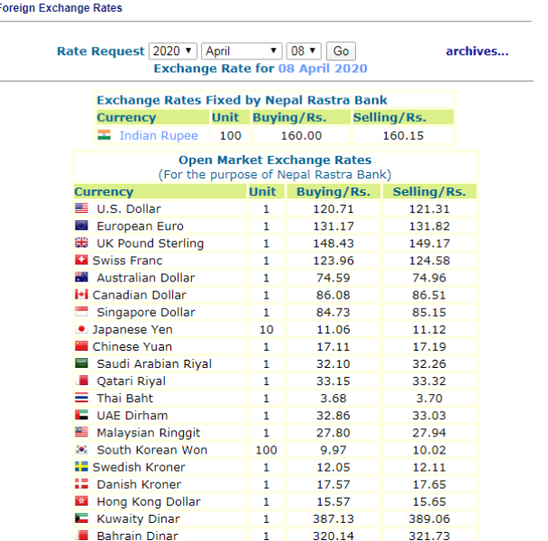 त्यसैगरी अस्ट्रेलियन डलर एकको खरिददर ७४ रुपैयाँ ५९ पैसा र विक्रिदर ७४ रुपैयाँ ९६ पैसा रहेको छ । कतारी रियाल एकको खरिददर ३३ रुपैयाँ १५ पैसा र विक्रिदर ३३ रुपैयाँ ३२ पैसा रहेको नेपाल राष्ट्र बैंकले जनाएको छ ।