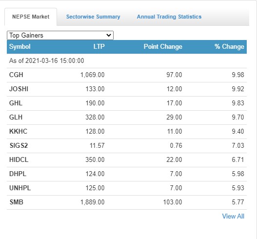त्यस्तै, घलेम्दी हाईड्रोपावर, ग्रिन लाइफ हाईड्रोपावर, खाँनीखाला हाईड्रोपावर, सिद्धार्थ स्किम ग्रोथ स्किम–२, हाईड्रो इलेक्टिसिटि एण्ड डेभलपमेन्ट, दिव्यश्वरी हाईड्रोपावर, युनियन हाईड्रोपावर र स्र्पोट माईक्रोफाइनान्सका लगानीकर्ताले सर्वाधिक कमाएका छन् ।