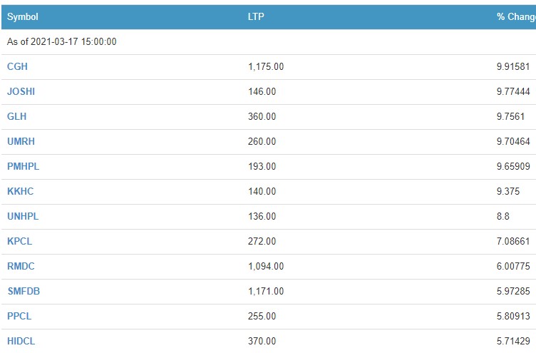 त्यस्तै, ग्रिन लाइफ हाईड्रोपावर, युनाईटेड इर्दी मर्दी, पञ्चकन्या माई हाईड्रोपावर, खानी खोला हाईड्रोपावर, युनियन हाईड्रोपावर, कालिका पावर, आरएमडिसी लघुवित्त र समिट लघुवित्तका लगानीकर्ताले सर्वाधिक कमाएका छन् ।