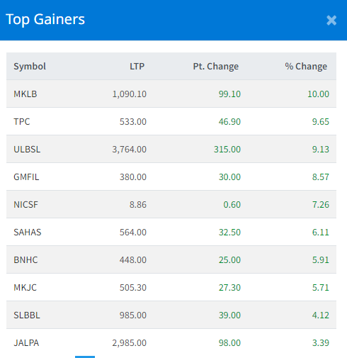 आज सबैभन्दा धेरै मनकामना स्मार्ट लघुवित्त वित्तीय संस्थाका लगानीकर्ताले कमाएका छन् । कम्पनीका लगानीकर्ताले १० प्रतिशतका दरले कमाएका छन् । तेह्रथुम पावर कम्पनीका लगानीकर्ताले ९ दशमलव ६५ प्रतिशतका दरले कमाएका छन् । उपकार लघुवित्तका लगानीकर्ताले ९ दशमलव १३ प्रतिशतका दरले कमाएका छन् ।