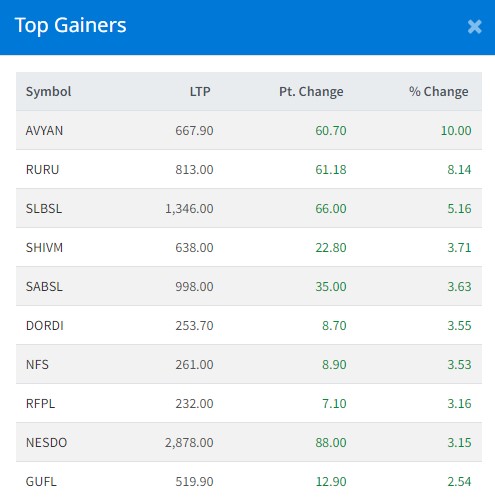 आज सबैभन्दा धेरै अभियान लघुवित्त वित्तीय संस्थाका लगानीकर्ताल धेरै कमाएका छन् । कम्पनीका लगानीकर्ताले १० प्रतिशतका दरले कमाएका छन् । रुरु जलविद्युत कम्पनीका लगानीकर्ताले ८ दशमलव १४ प्रतिशतका दरले कमाएका छन् । सामुदायिक लघुवित्त वित्तीय संस्थाका लगानीकर्ताले ५ दशमलव १६ प्रशिततका दरले कमाएका छन् ।