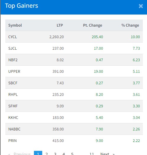 आज सबैभन्दा धेरै सिवाइसी नेपाल लघुवित्त वित्तीय संस्थाका लगानीकर्ताले कमाएका छन् । कम्पनीका लगानीकर्ताले १० प्रतिशतका दरले कमाएका छन् । साञ्जेन जलविद्युत कम्पनीका लगानीका लगानीकर्ताले ७ दशमलव ७३ प्रतिशतका दरले कमाएका छन् । नविल ब्यालेन्स फण्ड २ का इकाईधनीले ६ दशमलव २३ प्रतिशतका दरले कमाएका छन् ।