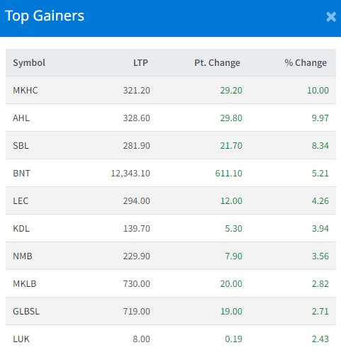 आज सबैभन्दा धेरै माया खोला हाइड्रोपावर कम्पनीका लगानकिर्ताले कमाएका छन् । यस कम्पनीका लगानीकर्ताले १० प्रतिशतका दरले कमाएका हुन् । एशियन हाइड्रोपावरका लगानकिर्ताले ९ दशमलव ९७ प्रतिशतका दरले कमाएका छन् । सिद्धार्थ बैंकका लगानीकर्ताले ८ प्रतिशतका दरले कमाएका छन् ।
