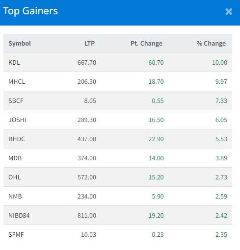 त्यस्तै, मैलुङ हाइड्रोका लगानीकर्ताले ९ दशमलव ९७ प्रतिशतका दरले कमाएका छन् । सनराइज ब्लुचिप फण्डका इकाईधनीले ७ दशमलव ३३ प्रतिशतका दरले कमाएका छन् । जोशी हाइड्रोपावर कम्पनीका लगानकिर्ताले ६ प्रतिशतका दरले कमाएका छन् ।