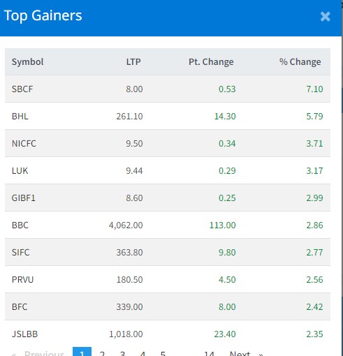 आज सबैभन्दा धेरै विन नेपाल लघुवित्त वित्तीय संस्थाका लगानीकर्ताले गुमाएका छन् । आज यस कम्पनीका लगानीकर्ताले ४ दशमलव ३१ प्रतिशतका दरले गुमाएका हुन् ।