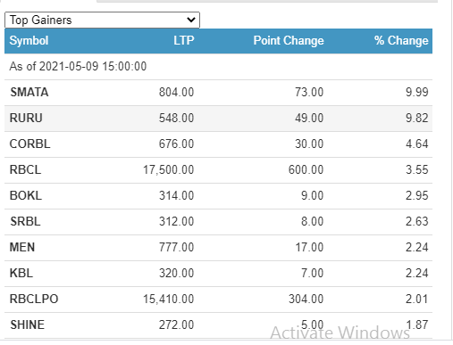 आज सबैभन्दा धेरै समता लघुवित्तका लगानीकर्ताले ९ दशमलव ९९ प्रतिशतका दरले कमाएका छन् । रुरु हाइड्रो पावर कम्पनीका लगानीकर्ताले ९ दशमलव ८२ प्रतिशतका दरलले कमाएका छन् । कर्पोरेट डेभलपमेन्ट बैंकका लगानीकर्ताले ४ दशमलव ६४ प्रतिशतका दरले कमाएका छन् । राष्ट्रिय बीमा कम्पनीका लगानीकर्ताले ३ दशमलव ५५ प्रतिशतका दरले कमाएका छन् ।