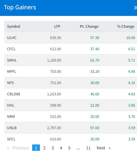 काठमाडौं । आज शेयर बजार नेप्से परिसूचक ११ दशलमव ६४ अंकले घटेर २,६९९ को विन्दुमा कायम भएको छ । आज ७४ कम्पनीको शेयर मूल्य बढेको छ भने १६० कम्पनीको शेयर मूल्य घटेको छ । आज सबैभन्दा धेरै अपर लोहोरे खोलाका लगानीकर्ताले कमाएका छन् । आज यस कम्पनीका लगानीकर्ताले १० प्रतिशतका दरले कमाएका हुन् । सेन्ट्रल फाइनान्सका लगानकिर्ताले ६ दशलमव ५१ प्रतिशतका दरले कमाएका हुन् । सुपर मादीका लगानीकर्ताले ५ दशलमव ७१ प्रतिशतका दरले कमाएका हुन् ।