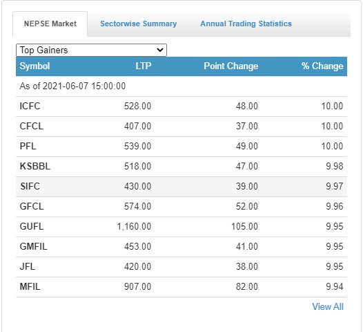 त्यस्तै, श्री इन्भेष्टमेन्ट फाइनान्स, गुडबिल फाइनान्स, गोर्खाज फाइनान्स, गृहेश्वरी मर्चेन्ट बैंकिङ्, जानकी फाइनान्स, मञ्जुश्री फाइनान्सका लगानीकर्ताले सर्वाधिक कमाएका छन् ।