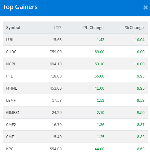 आज सबैभन्दा धेरै लक्ष्मी उन्नती कोषमा इकाईधनीले कमाएका छन् । कोषका इकाईधनीले १० दशमलव ०४ प्रतिशतका दरले कमाएका छन् । सिइडिबी हाइड्रोपावर कम्पनीका लगानीकर्ताले प्रतिशतका दरले कमाएका छन् । नाङदी ग्रुप पावर कम्पनीका लगानीकर्ताले पनि १० प्रतिशतका दरले कमाएका छन् ।