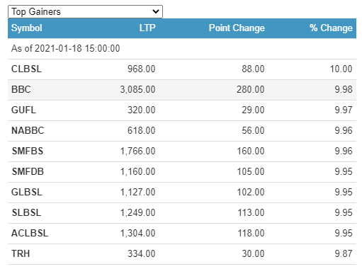 आज सबैभन्दा धेरै सिभिल लघुवित्त वित्तीय संस्था लिमिटेडका लगानीकर्ताले १० प्रतिशतका दरले कमाएका छन् । त्यस्तै, विशाल बजार कम्पनी, गोर्खाज फाइनान्स, नारायणी डेभलपमेन्ट बैंक, स्वाभिमान लघुवित्त वित्तीय संस्था लिमिटेड, समिट लघुवित्त वित्तीय संस्था लिमिटेड, गुराँस लघुवित्त वित्तीय संस्था लिमिटेड, आरम्भ चौतारी लघुवित्त वित्तीय संस्था लिमिटेड, सामुदायिक लघुवित्त वित्तीय संस्था लिमिटेड, एचआइडिसीएल, कर्पोरेट डेभलपमेन्ट बैंक, नेपाल फाइनान्स लिमिटेड, प्रभु लाइफ इन्स्योरेन्स कम्पनी लिमिटेड, बरूण हाइड्रोपावर, कामना सेवा विकास बैंक लिमिटेड र प्रोग्रेशिभ फाइनान्स लगायतका लगानीकर्ताले कमाएका छन् ।