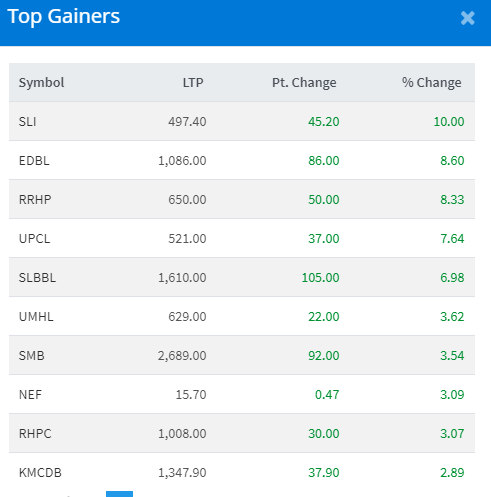 आज सबैभन्दा धेरै सानिमा लाइफ इन्स्योरेन्स कम्पनीका लगानीकर्ताले कमाएका छन् । कम्पनीका लगानीकर्ताले १० प्रतिशतका दरले कमाएका छन् । एक्सेल डेभलपमेन्ट बैंकका लगानीकर्ताले ८ दशमलव ६० प्रतिशतका दरले कमाएका छन् । रैराङ हाइड्रोपावर कम्पनीका लगानकिर्ताले ८ दशमलव ३३ प्रतिशतका दरले कमाएका छन् ।