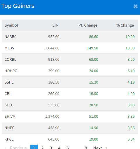 आज सबैभन्दा धेरै नारायणी डेभलपमेन्ट बैंक र मानुषि लघुवित्तका लगानीकर्ताले कमाएका छन् । कम्पनीका लगानीकर्ताले १० प्रतिशतका दरले कमाएका हुन् । कर्पोरेट डेभलपमेन्ट बैंकका लगानीकर्ताले ८ प्रतिशतका दरले कमाएका छन् । हिमाल दोलखा हाइड्रोपावर कम्पनीका लगानीकर्ताले ६ दशमलव ४० प्रतिशतका दरले कमाएका छन् ।