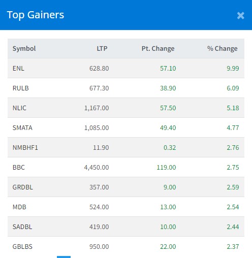 त्यसैगरी आज सबैभन्दा धेरै इमर्जिङ नेपालका लगानीकर्ताले कमाएका छन् । कम्पनीका लगानीकर्ताले ९ दशमलव ९९ प्रतिशतका दरले कमाएका छन् । राष्ट्र उत्थान लघुवित्तका लगानीकर्ताले ६ दशमलव ०९ प्रतिशतका दरले कमाएका छन् । नेपाल लाइफ इन्स्योरेन्स कम्पनीका लगानीकर्ताले ५ दशमलव १८ प्रतिशतका दरले कमाएका छन् ।
