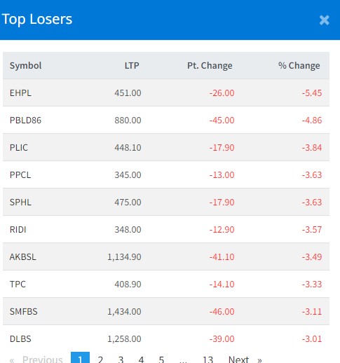 आज सबैभन्दा धेरै इष्र्टन हाइड्रोपावर कम्पनीका लगानीकर्ताले गुमाएका छन् । कम्पनीका लगानीकर्ताले ५ दशमलव ४५ प्रतिशतका दरले गुमाएका छन् ।