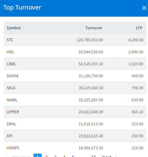 आज दिनभरिमा २६१ कम्पनीको ४० लाख ५९ हजार १४९ कित्ता शेयर किनबेच हुँदा १ अर्ब २० करोडमाथिको शेयर कारोबार भएको छ । आज सबैभन्दा धेरै साल्ट ट्रेडीङको शेयर कारोबार भएको छ । आज कम्पनीको १२ करोड ७ लखको शेयर कारोबार भएको छ ।