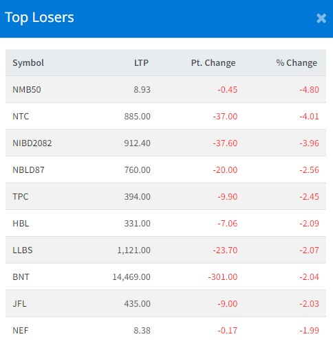 आज सबैभन्दा धेरै एनएमबि ५० का इकाईधनीले गुमाएका छन् । यसका इकाईधनीले ४ दशमलव ८० प्रतिशतका दरले गुमाएका हुन् ।