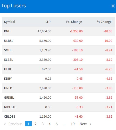 आज सबैभन्दा धेरै बोटलर्स नेपाल बालाजू र उपकार लघुवित्त वित्तीय संस्थाका लगानीकर्ताले गुमाएका छन् । आज यी २ कम्पनीका लगानीकर्ताले १० प्रतिशतका दरले गुमाएका हुन् ।
