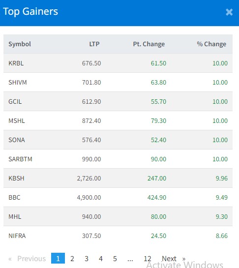 आज सबैभन्दा धेरै ६ कम्पनीका लगानीकर्ताले कमाएका छन् । आज कर्णाली डेभलपमेन्ट बैंक, शिवम् सिमेन्ट, घोराही सिमेन्ट, मिड सोलु, सर्वोत्तम र सोनाका लगानीकर्ताले कमाएका छन् । आज यी कम्पनीका लगानीकर्ताले १० प्रतिशतका दरले कमाएका हुन् ।