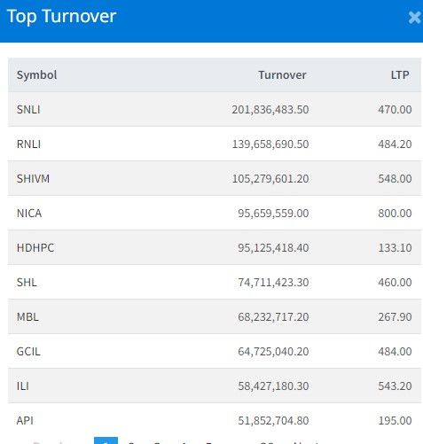 आज ३ अर्ब २९ करोड ३९ लाख २१ हजार रुपैयाँको शेयर कारोबार हुँदा सबैभन्दा धेरै सन नेपाल लाइप इन्स्योरेन्स कम्पनीको शेयर कारोबार भएको छ । आज यस कम्पनीको २० करोड १८ लाख रुपैयाँको शेयर कारोबार भएको छ । आज रिलायबल नेपाल लाइफको १३ करोड ९६ लाख रुपैयाँको शेयर कारोबार भएको छ । शिवम् सिमेन्टको १० करोड ५२ लाख रुपैयाँको शेयर कारोबार भएको छ । एनआइसी एशिया बैंकको ९ करोड ५६ लाख रुपैयाँको शेयर कारोबार भएको छ ।