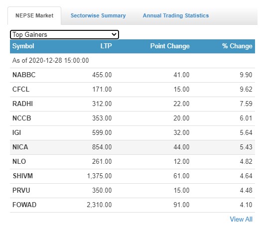 नारायणी डेभलपमेन्ट बैंक, सेन्ट्रल फाइनान्स, राधी विद्युत कम्पनी, एनसीसी बैंक, आइएमइ जनरल इन्स्योरेन्स, एनआइसी एशिया बैंक, नेपाल ल्युब ओइल कम्पनी, शिवम् सिमेन्ट, प्रभु बैंक र फरवार्ड माइक्रोफाइनान्सका लगानीकर्ताहरूले सबैभन्दा धेरै कमाएका छन् ।
