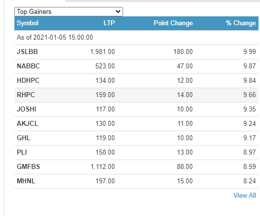 आज जनउत्थान लघुवित्त वित्तीय संस्थाका लगानीकर्ताले ९ दशमलव ९९ प्रतिशतका दरले कमाएका छन् । नारायणी डेभलपमेन्ट बैंकका लगानीकर्ताले ९ दशमलव ८७ प्रतिशतका दरले कमाएका छन् । हिमाल दोलखा हाइड्रोपावर, रिडी हाइड्रोपावर, जोशी हाइड्रोपावर लगायतका लगानीकर्ताले कमाएका छन् ।