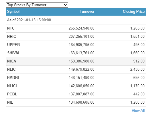 दिनभरिमा २ सय ७ सय वटा कम्पनीको १ करोड ३२ लाख २३ हजार ८ सय ३२ कित्ता शेयर किनबेच हुँदा ५ अर्ब ८८करोड रुपैयाँ भन्दा बढीको कारोबार भएको छ ।