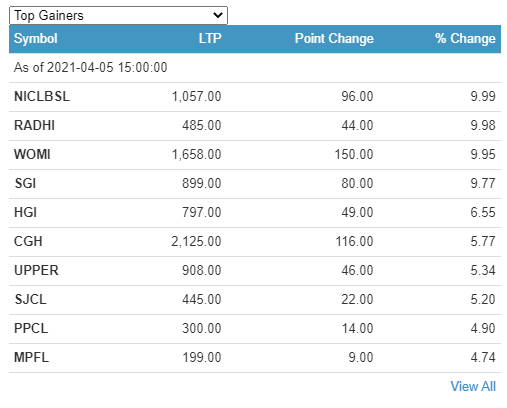 त्यसैगरी वोमी लघुवित्तका लगानीकर्ताले ९ दशमलव ९५ प्रतिशतका दरले कमाएकमा छन् । सानिमा जनरल इन्स्योरेन्स कम्पनीका लगानकिर्ताले ९ दशमलव ७७ प्रतिशतका दरले कमाएका छन् । हिमालयन जनरल इन्स्योरेन्स कम्पनीका लगानीकर्ताले ६ दशमलव ५५ प्रतिशतका दरले कमाएका छन् ।