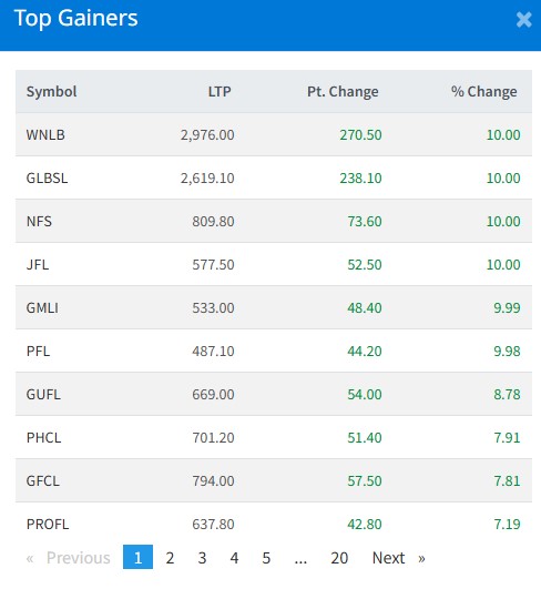 आज सबैभन्दा धेरै विन नेपाल लघुवित्त वित्तीय संस्था, गुराँस लघुवित्त वित्तीय संस्था, नेपाल फाइनान्स र जानकी फाइनान्सका लगानीकर्ताले कमाएका छन् । आज यी चार कम्पनीका लगानीकर्ताले १० प्रतिशतका दरले कमाएका हुन् । गार्डियन माइक्रो लाइफका लगानकिर्ताले ९ दशलमव ९९ प्रतिशतका दरले कमाएका छन् ।