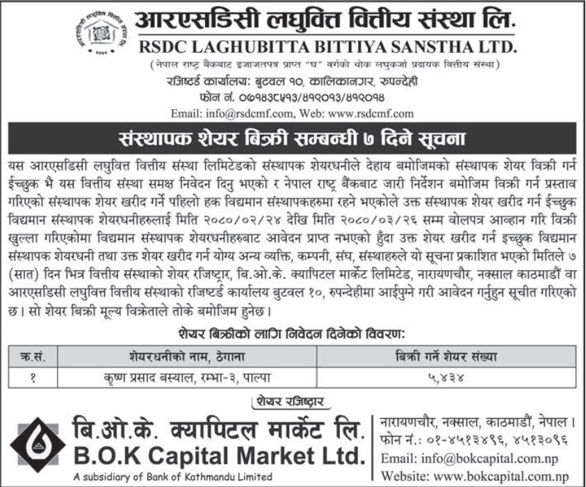 आरएसडिसी लघुवित्तको संस्थापक शेयर सर्वसाधारणमा विक्री खुला