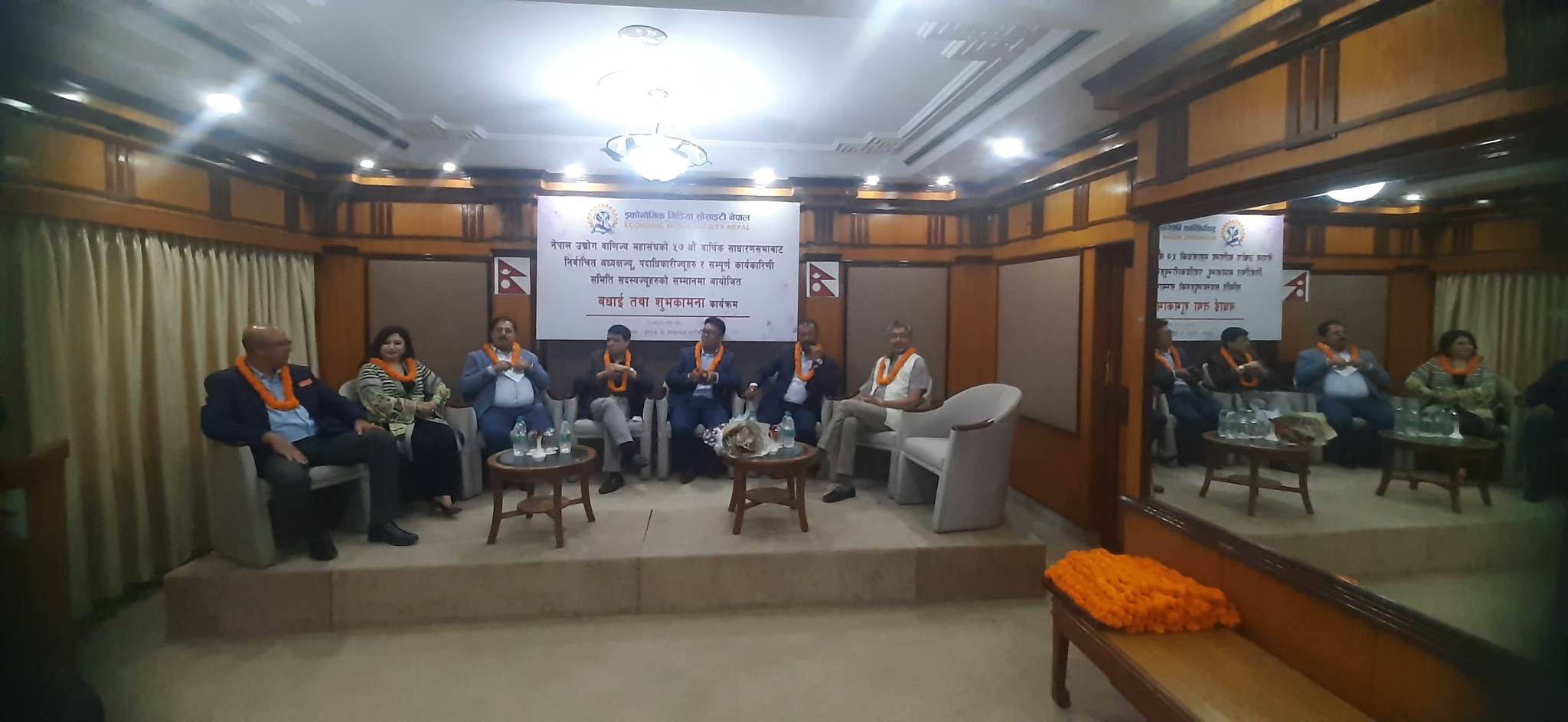 काठमाडौं । इकोनोमिक मिडिया सोसाइटी नेपालले नेपाल उद्योग बाणिज्य महासंघको ५७ औं वार्षिक साधारणसभाबाट निर्वाचित अध्यक्ष, पदाधिकारी र सम्पुर्ण कार्यकारिणी समिति सदश्यहरुलाई बधाई तथा शुभकामना व्यक्त गरेको छ ।