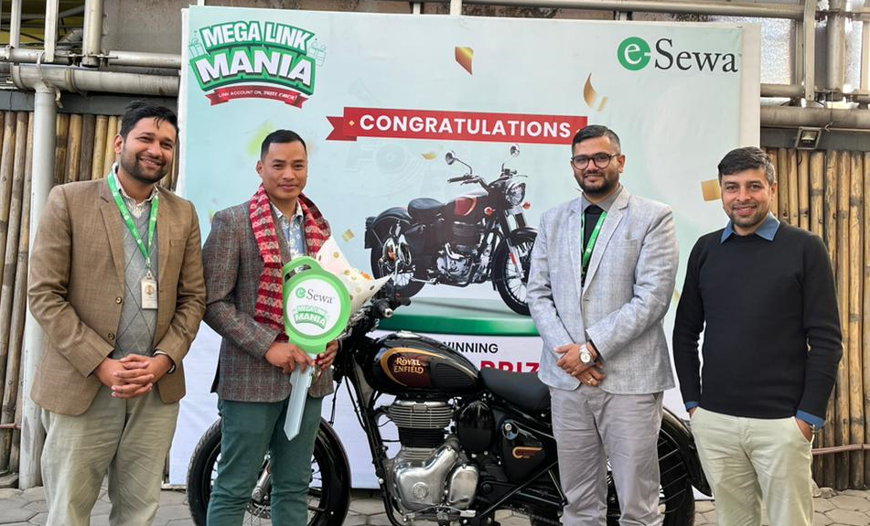 काठमाडौं । इसेवाको बैंक लिंक एकाउन्ट मार्फत भुक्तानी गर्दा बम्पर उपहारमा धादिङका निरज थापा मगरले ३५० सीसीको मोटरसाइकल जित्न सफल भएका छन् । विजेता थापालाई मंगलबार नै उक्त मोटरसाइकल हस्तान्तरण गरेको कम्पनीले जनाएको छ । इसेवाका चिफ बिजनेस अफिसर आशिष गौतमले भाग्यशाली विजेता निरज थापा मगरलाई मोटरसाइकल हस्तान्तरण गरेका हुन् ।