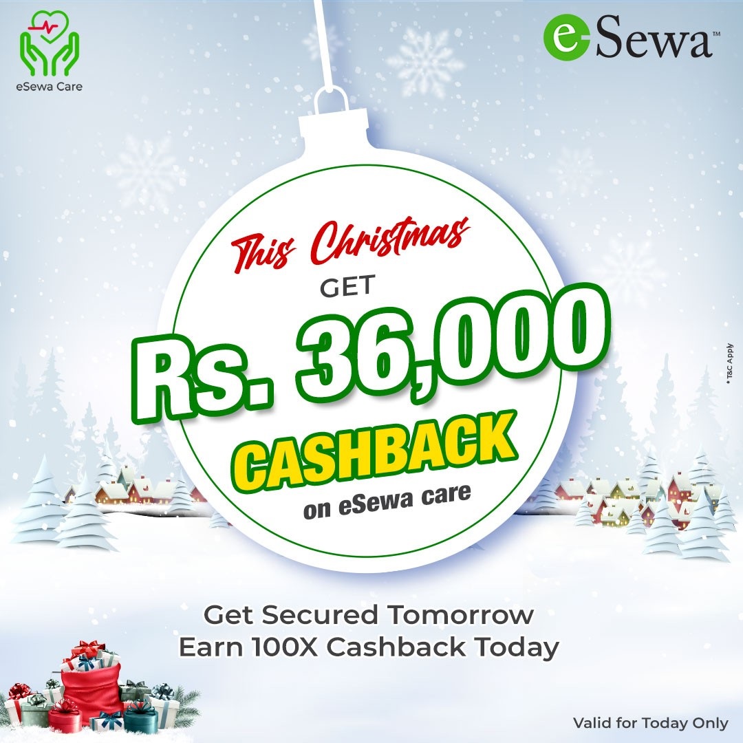 काठमाडौं । भुक्तानी सेवा प्रदायक इसेवाले अत्याधिक रुचाइएको इसेवा केयर सुविधामा क्रिसमस अफर अन्तर्गत ३६ हजार क्यासब्याक पाइने अफर सार्बजनिक गरेको छ । दैनिक एक रुपैयाँ भन्दा कममै हेल्थ केयर सुविधा लिन सकिने इसेवा केयरमा यस्तो अफर सार्बजनिक गरिएको जनाइएको छ ।