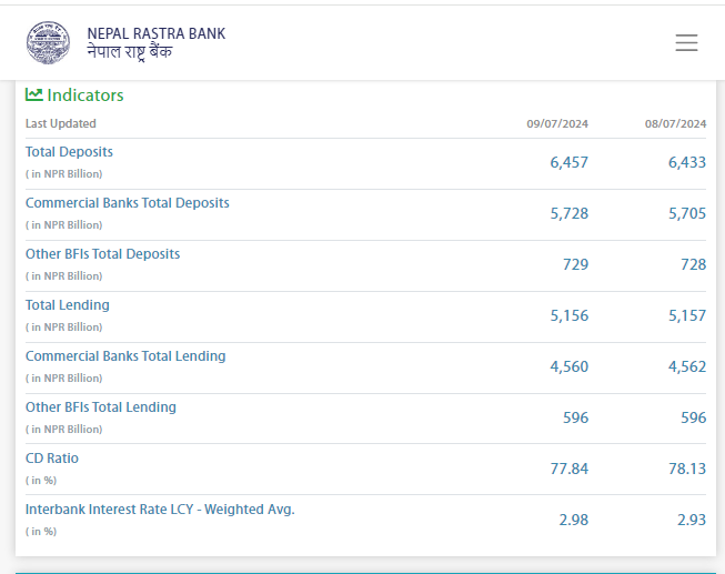 एकै दिन २४ अर्बले बढ्यो बैंकमा निक्षेप, सिडी ७८ % तल, अन्तर बैंक ब्याज दर कति?