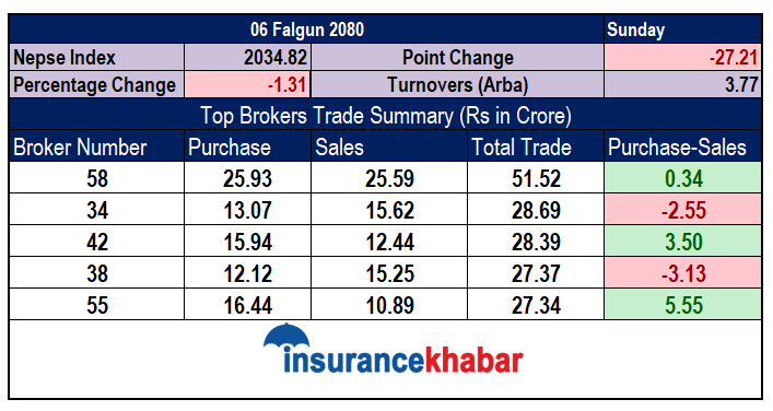 एकै दिन २७ अंक माथि घटेको बजारमा ठूला ब्रोकरबाट कस्तो भयो कारोबार ?
