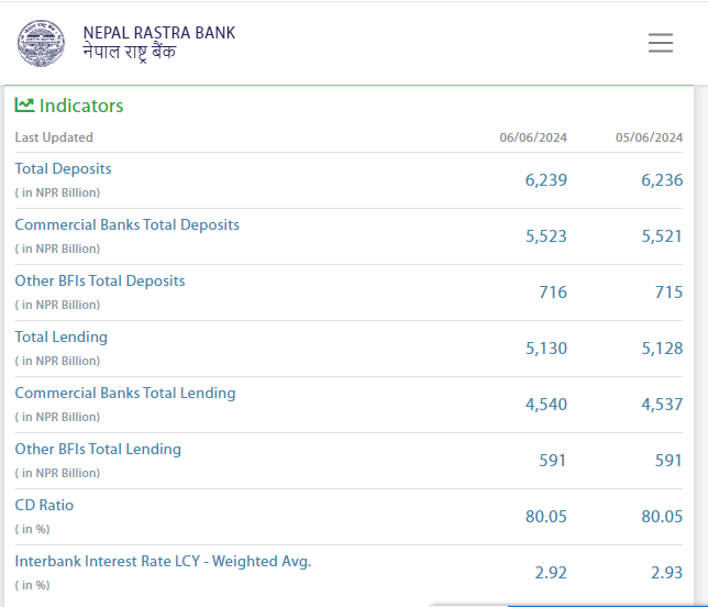 सिडी रेशियो ८०.०५ प्रतिशत कायम भएको छ भने अन्तर बैंक ब्याजदर २.९२ प्रतिशत छ।