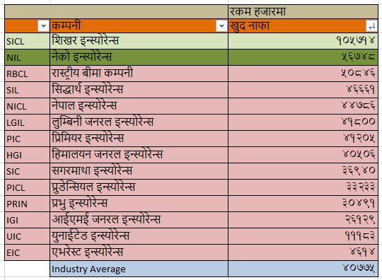 अरु निर्जीवन बीमा इन्स्योरेन्स कम्पनी संग नेको इन्स्योरेन्सको तुलनात्मक अध्ययन ( पहिलो त्रैमासको आधारमा)