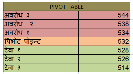 खुला:५३१ उच्च :५३६ न्यून: ५३० बन्द: ५३०