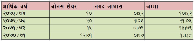 कम्पनीले आर्थिक वर्ष ७४/७५ को लाभांस घोषणा गर्न बाँकी नै छ ।