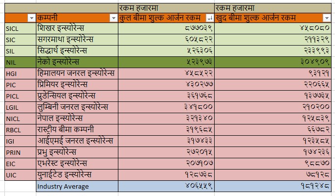 अरु निर्जीवन बीमा इन्स्योरेन्स कम्पनी संग नेको इन्स्योरेन्सको तुलनात्मक अध्ययन ( पहिलो त्रैमासको आधारमा)