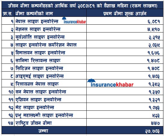 एक महिनामा जीवन बीमकहरुले गरे २ अर्ब ७७ करोडको व्यवसाय, कुनले कति गरे ?