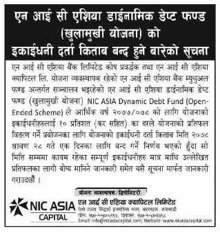 एनआईसी एशिया डाईनामिक डेप्ट फण्डको बुक क्लोज मिति तय