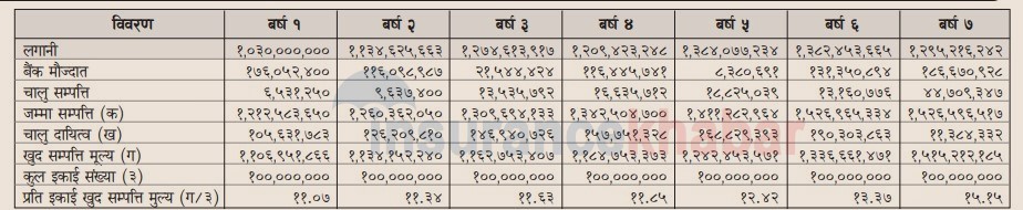 प्रति इकाइ खुद सम्पत्ति मूल्यको गणना तथा वित्तीय अनुपात सम्बन्धी विवरण :