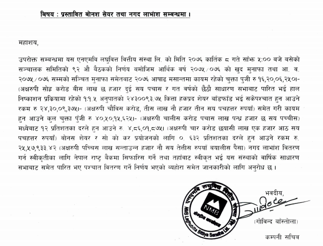 एनएमबि लघुवित्तद्धारा लाभांश घोषणा, हकप्रदले समेत पाउने
