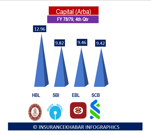 ४ वाणिज्य बैंक मध्ये हिमालयन बैंकको पुँजी सबै भन्दा धेरै छ । हिमालयन बैंकको पुँजी १२ अर्ब ९६ करोड रहेको छ भने स्ट्याण्डर्ड चार्टर्ड बैंकको पुँजी सबै भन्दा कम ९ अर्ब ४२ करोड रहेको छ ।
