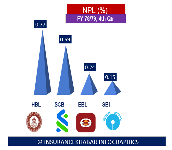 हिमालयन बैंकको सर्वाधिक शून्य दशमलव ७७ प्रतिशत खराब कर्जा हुँदा नेपाल एसबिआई बैंकको सबै भन्दा कम शून्य दशमलव १५ प्रतिशत खराब कर्जा छ ।