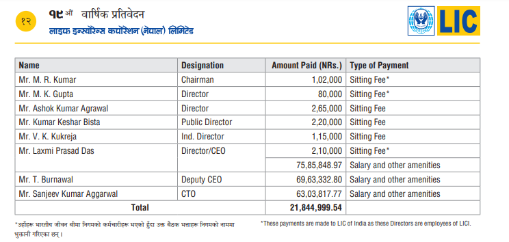 एलआइसी नेपालका सिइओ दासको वार्षिक तलब सुविधा ७५ लाख ८५ हजार रुपैयाँ